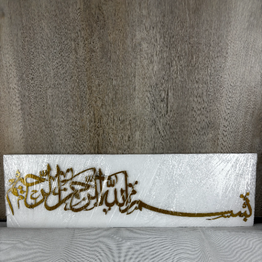 Die IWA Concept Bismillah Wanddekoration verbindet spirituelle Bedeutung mit moderner Wohnästhetik. Das aufwendig gefertigte Wandkunstwerk zeigt den arabischen Schriftzug „Bismillah ir-Rahman ir-Rahim“ – „Im Namen Gottes, des Allerbarmers, des Barmherzigen“ – und bringt damit Segen, Harmonie und Eleganz in jedes Zuhause.